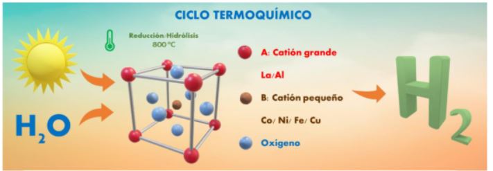 El hidrógeno limpio, también denominado hidrógeno verde, puede desempeñar un papel clave en la descarbonización de diversos sectores, tal y como pretende la Comisión Europea y la Agenda 2030 para el Desarrollo Sostenible. Este tipo de hidrógeno puede obtenerse mediante diversos procesos, como la electrólisis impulsada por la energía fotovoltaica, la gasificación de la biomasa, la fotosíntesis artificial o mediante los ciclos termoquímicos impulsados por energía solar térmica. En esta última alternativa, un material sólido es capaz de reducirse a alta temperatura liberando oxígeno- y reoxidarse al ponerse en contacto con vapor de agua, recuperando su estructura inicial y produciendo hidrógeno. Este proceso presenta la gran ventaja de obtener hidrógeno y oxígeno de forma separada, utilizando únicamente agua como materia prima sostenible. Sin embargo, su principal problema es que requiere condiciones muy exigentes de operación en cuanto a su temperatura (usualmente por encima de 1000-1200 C).