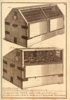 Cajón para transportar plantas vivas. Casimiro Gómez Ortega. Construccion sobre el modo mas seguro y economico de transportar plantas vivas por mar y tierra. Madrid, 1779