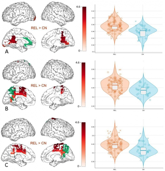 En línea con este modelo, los resultados del trabajo desarrollado en el CTB mostraron por primera vez que el cerebro de los familiares de Alzheimer mostraba hiper-sincronización en la red fronto-parietal, un incremento de la conectividad entre regiones cerebrales que está asociada al posterior desarrollo de esta enfermedad degenerativa.