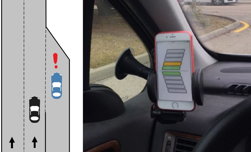 El sistema de ayuda al conductor para la maniobra de incorporación en carreteras implementado en un Smartphone. Fuente: UPM.