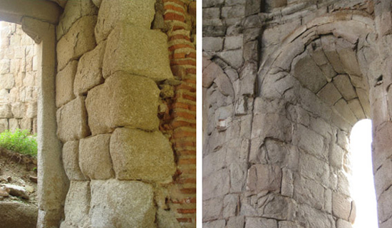 Monasterio de Pelayos de la Presa. Algunas formas de alteración observadas en los sillares graníticos. Erosión diferencial de los sillares graníticos favorecida por la pérdida del mortero de junta