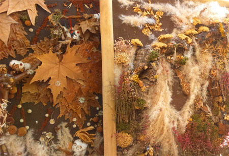 Los mayores han expresado su percepción de la primavera, el verano, el otoño y el invierno a través de cuadros hechos a mano con plantas naturales.