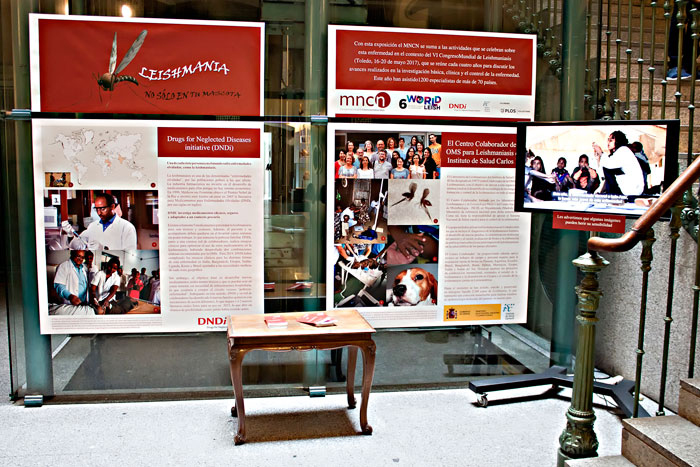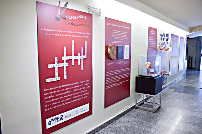 En colaboración con Jorge Alvar, jefe del programa de leishmaniasis de la Iniciativa Medicamentos para Enfermedades Olvidadas (DNDi por sus siglas en inglés) y Javier Moreno del Centro Colaborador de la OMS para Leishmaniasis del Instituto de Salud Carlos III, el MNCN colabora en la difusión y conocimiento de  esta enfermedad con esta muestra que explica a través de paneles, maquetas, vídeos y reproducciones, qué es la leishmaniasis, cómo la transmite el flebotomo, su historia y evolución así como las cifras de afectados en el mundo y las organizaciones internacionales que luchan contra la enfermedad.