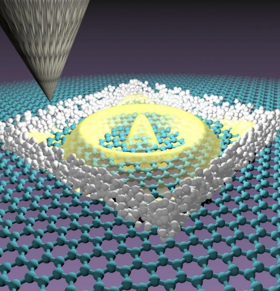 Imagen esquemática de la creación de paredes impenetrables para los electrones del grafeno, mediante la manipulación de átomos de hidrógeno con la punta del microscopio de efecto túnel / José Lado-Aalto University