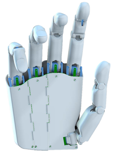 Investigadores de la Universidad Politécnica de Madrid han desarrollado nuevos conceptos de diseño para integrar la mecánica y la electrónica dentro de la mano de un robot humanoide, que permite una comunicación más amigable con los humanos y favorece su interacción social