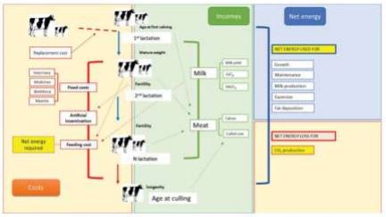 Componentes del modelo bioeconómico. Fuente: Journal of Dairy Science