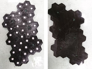 Para proteger la estructura de estas embarcaciones, investigadores de la ETSI Navales de la UPM han ideado un nuevo sistema que consiste en introducir entre las capas del material compuesto del casco una delgada capa viscoelástica que absorbe y disipa gran parte de la energía debida al impacto contra la superficie libre del agua. Se trata de una capa formada por hexágonos regulares, como si se tratara de un panal de abejas formado por unas celdillas de un polímero de elevada rigidez que encapsulan un material más blando y deformable (viscoelástico), como una goma diseñada especialmente para este cometido. Cuando la embarcación recibe los impactos debidos al slamming, la mayor parte de la energía es capturada por la capa viscoelástica que se deforma almacenando temporalmente la energía y protegiendo al material del casco. Después del impacto, la capa viscoelástica devuelve la energía almacenada al mar. Los resultados muestran que los daños generados en el material se reducen drásticamente debido a que la capa viscoelástica protege el material que está bajo ella. Esta protección no es un añadido a la estructura de la embarcación, sino que se encuentra embebida en el propio material con el que está fabricada, lo cual hace más efectiva y duradera la protección frente a los impactos. Con esta estrategia se ha logrado minimizar los daños causados por la navegación a altas velocidades y se ha podido multiplicar por tres el tiempo necesario entre reparaciones de los cascos dañados.