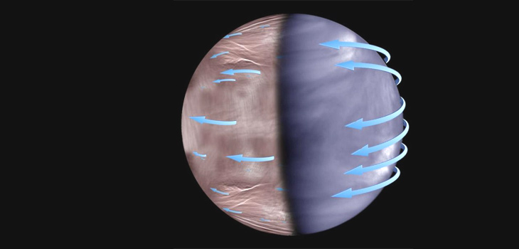 Venus, considerado durante mucho tiempo el planeta gemelo de la Tierra, es, sin embargo, un infierno comparado con nuestro planeta, con temperaturas en la superficie superiores a los 450 ºC, una atmósfera aplastante y densas nubes de ácido sulfúrico que cubren todo el astro. La <a href="https://www.ehu.eus/web/guest" title="Universidad del País Vasco" alt="Universidad del País Vasco" target="_blank">Universidad del País Vasco</a> (UPV/EHU) participa en una investigación internacional que desvela la extraña circulación atmosférica en el lado nocturno del planeta.