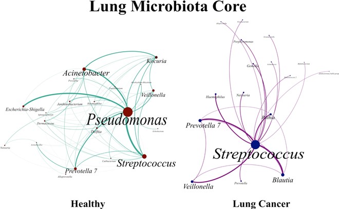 A pesar de que las composiciones de la microbiota de cada paciente son distintas, los investigadores encontraron una mayor predominancia de Streptococcus en las muestras de pulmón afectado por cáncer (de los más de 400 géneros de bacterias encontrados), mientras que en las muestras de los controles destacaron las Pseudomonas. También detectaron un mayor parecido entre la microbiota de la saliva y la de los pulmones en los pacientes que en los grupos de control, fenómeno que se podría relacionar con aspiraciones desde la cavidad oral hacia los pulmones.
