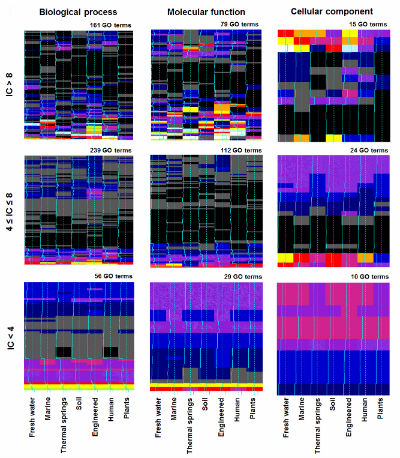 La diversidad es clave: metagenomas de distintos entornos pueden predecir diferentes tipos de funciones genéticas (Gráfico de F. Supek, IRB Barcelona)