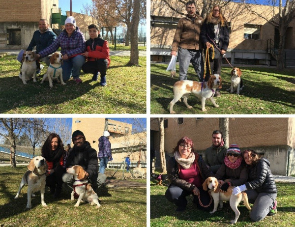 Las patitas de Pandora y Blanqui tiemblan al pisar, por primera vez, el césped; Turrón y Chinchán, con un mes más de experiencia que ellas, se alegran de reencontrarse con sus compañeros. A su alrededor, cuatro familias les miran con esa mezcla de emoción y nervios que caracteriza a la estampa típica de una adopción. Estos cuatro Beagles, completamente sanos, han formado parte de un proyecto de investigación de la <a href="https://www.ucm.es/" title="Universidad Complutense de Madrid" alt="Universidad Complutense de Madrid" target="_blank">Universidad Complutense de Madrid</a> (UCM). Hoy se despiden, en un principio para siempre, del laboratorio y comienzan una nueva vida en un hogar.