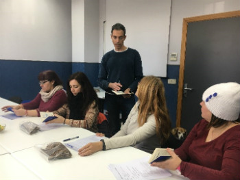 Gustavo les explica a Pilar, Rosana, Mari y Begoña los procedimientos realizados con los perros. / UCM