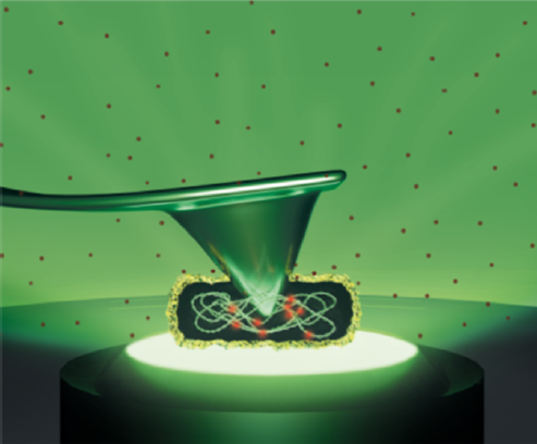 Nanoindentación AFM y microscopía de fluorescencia simultáneas sobre una bacteria E. coli. Imagen: Patricia Bondía.