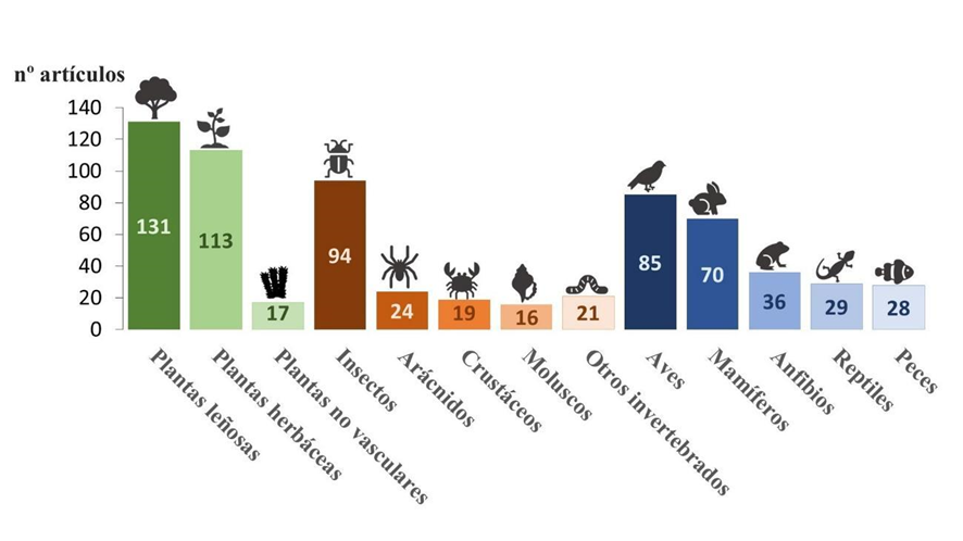 Número de artículos científicos que estudiaron cada grupo de especies / Sonia Llorente Culebras