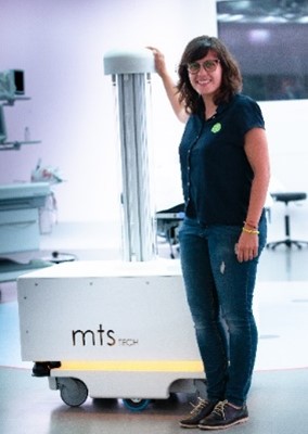 María Visa Boladeras, Fundadora y Directora de Main Technical Solutions MTSTec, empresa cliente de EEN Catcim, que ha creado un sistema móvil de desinfección con luz ultravioleta comercializada durante la Covid19. MTS uvc es un robot móvil colaborativo con un sistema de luz ultravioleta para garantizar la desinfección de superficies. La aplicación de los UV atraviesa las paredes celulares bacterianas, virales y hongos, dañando su sistema reproductivo y evitando así su reproducción.