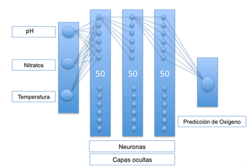 Arquitectura de la red neuronal propuesta para la predicción de oxígeno disuelto.