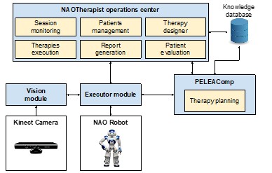 Los últimos avances en la investigación relativa a la inteligencia artificial y los robots sociales brindan nuevas formas de afrontar estas terapias de rehabilitación, mejorando los resultados, la experiencia del paciente y, en definitiva, logrando una mejor calidad de vida en el futuro. El proyecto NAOTherapist surge de la aplicación de ambos campos de investigación para construir una herramienta de utilidad para los terapeutas encargados de llevar a cabo estas terapias. Un robot de aspecto humanoide y amigable para el paciente que habla, emite sonidos y luces de diferentes colores, permite aumentar la interacción y capturar su atención en todo momento. Simultáneamente, un módulo de visión que combina técnicas de inteligencia artificial evalúa constantemente al paciente utilizando métricas clínicas que permiten al terapeuta tener información precisa del desarrollo y evolución de los pacientes. Esto permite generar informes clínicos de forma automática con el estado del paciente en cada momento.