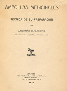 Cambronero, S. Ampollas medicinales. Técnica de su preparación. Madrid: Colonial, 1924.