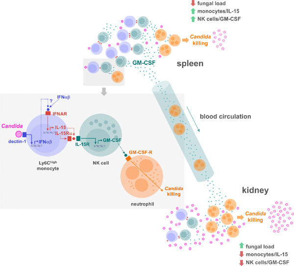 La investigación, llevada a cabo en roedores, indica que los monocitos del bazo, al detectar la infección, comienzan a producir IFN-1. Este a su vez induce la liberación de IL-15, la encargada de activar a las células NK. Finalmente, son los neutrófilos, activados por las células NK, los encargados de viajar hasta donde está la infección y acabar con el hongo.