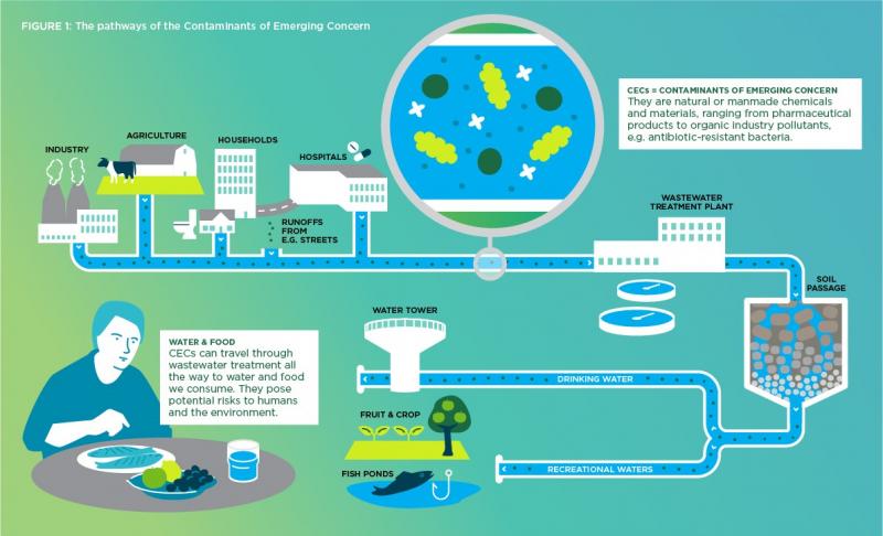 Cada día se emplea un mayor número de compuestos químicos. El crecimiento de la población ha incrementado el uso de productos de aseo y cuidado personal, de medicamentos y terapias avanzadas, y de la producción intensiva de comida. A diario se añaden 4000 nuevas sustancias en el catálogo oficial de compuestos químicos. En concreto, los contaminantes emergentes, que en general no se monitorizan debido a la dificultad técnica de su análisis pese a que se sospecha que pueden tener un efecto adverso en la salud humana y de los ecosistemas, pueden acabar en el agua residual. Las estaciones depuradoras de aguas residuales no están diseñadas para la eliminación de todos estos contaminantes emergentes y algunos pueden cambiar su estructura química, y por ello son vertidos al medio ambiente junto al agua tratada.