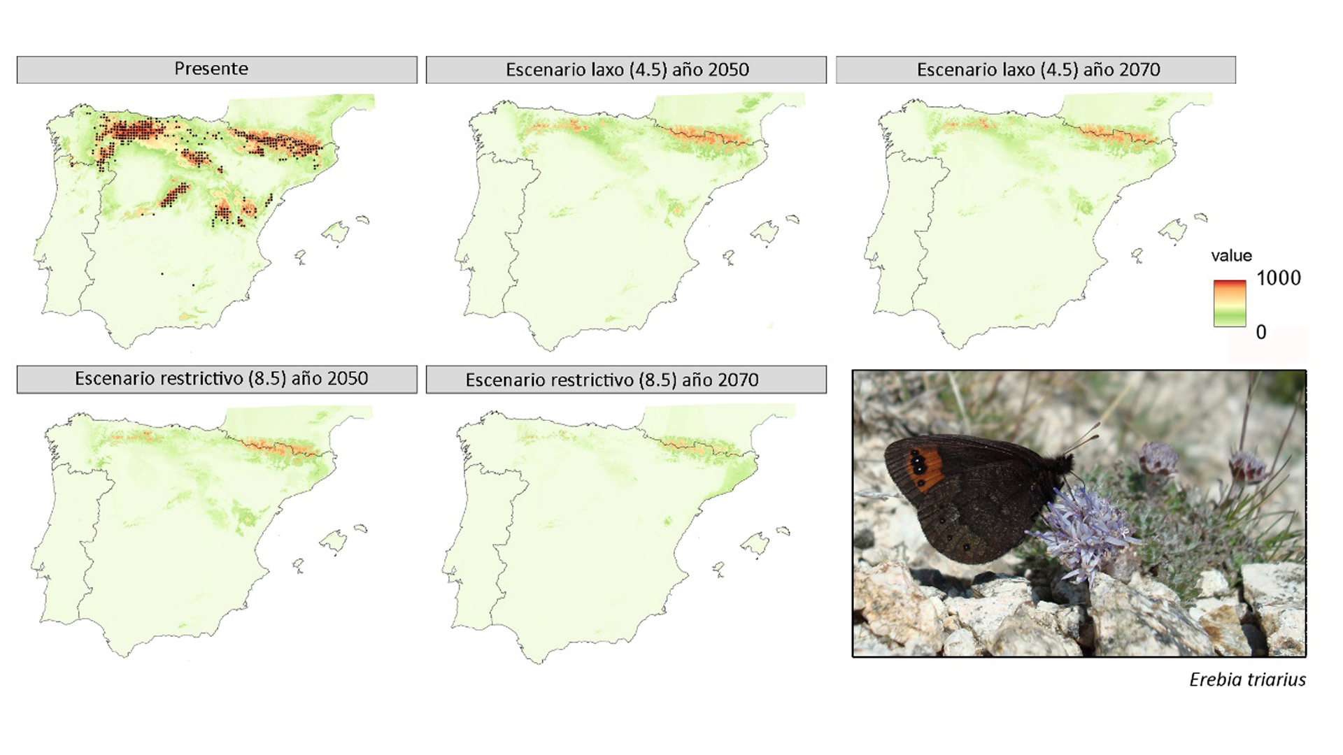 En suma, los modelos predicen que las 19 especies de mariposas ibéricas del género Erebia son extremadamente vulnerables al cambio climático, siendo mayores los declives previstos para el periodo 2070.
