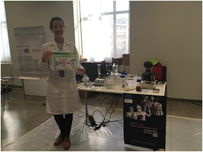 Durante toda la tarde se sucedieron los talleres y las demostraciones de GlaxoSmithKline, Airbus y Sensia-Solutions, empresas de vanguardia en los ámbitos farmacéutico, aeroespacial y de detección de gases. Por su parte, un nutrido grupo de investigadores Marie Skłodowska-Curie compartieron sus proyectos con los asistentes.