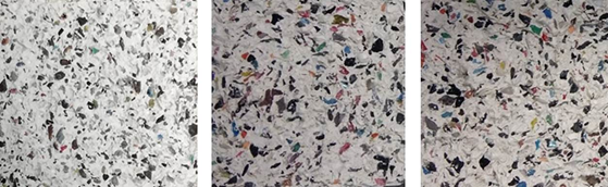 Aspecto interior de los paneles de yeso con residuo plástico de cables. Autor: Alejandra Vidales Barriguete